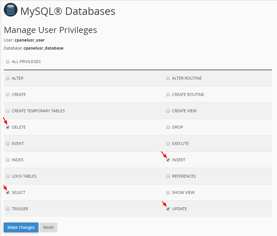 $db_username = "DATABASE_USER"; // Mysql username