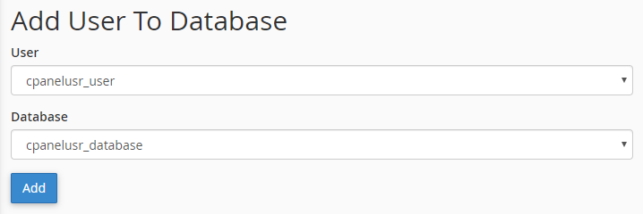 - "Add User To Database" セクションで、新しく作成したユーザーとデータベースを選択し、クリックします。 "Add"